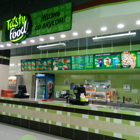 Большой фудкорт предлагает насладиться европейской кухней, любимым всеми фастфудом или же попробовать Хачапури по-аджарски в тематическом кафе «Тесто».